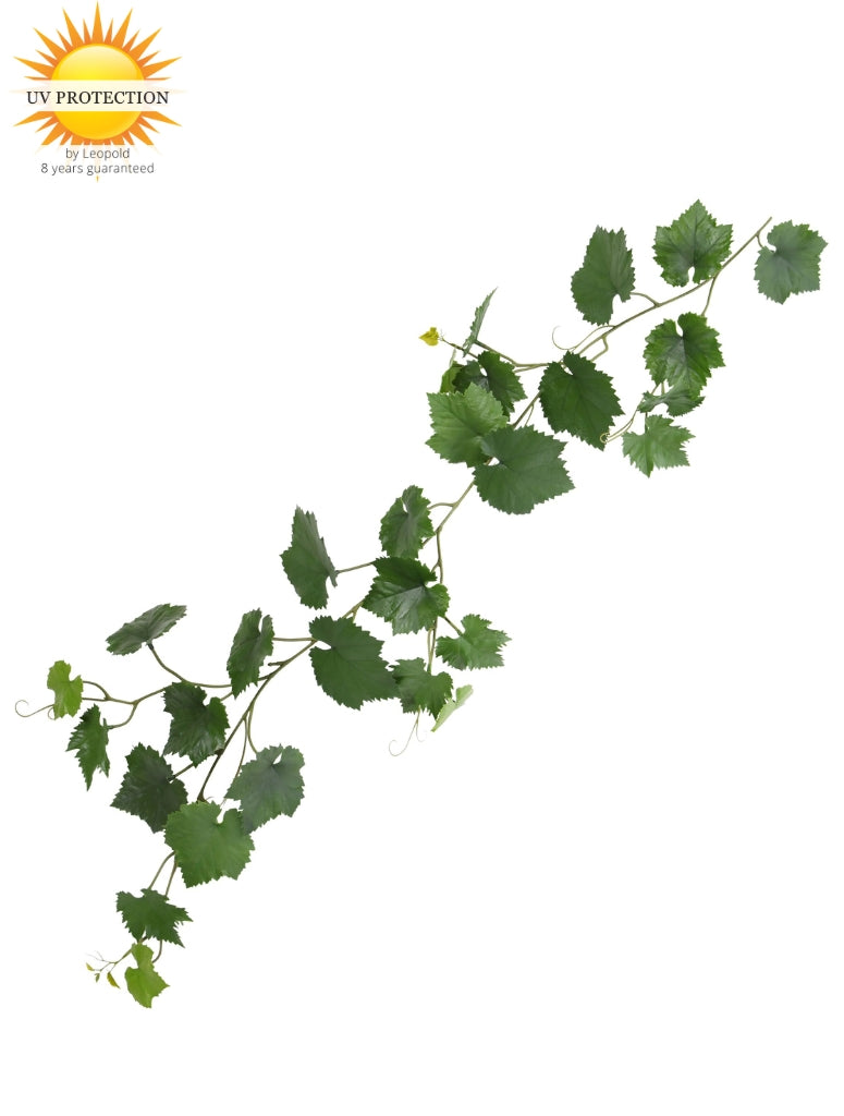 Een guirlande is een decoratieve slinger of krans, vaak gemaakt van bloemen, bladeren, of andere materialen. In dit geval is deze Druif kunst guirlande gemaakt met prachtige groene druivenbladeren. De mooie druivenbladeren variëren in groote en zijn gemaakt van kunststof en inherent uv-bestendig. Dat wil zeggen van binnenuit. Door dit speciale fabricage-proces kunnen wij een kleurgarantie van minimaal 8 jaar garanderen. Dus echt jarenlang versier plezier!
