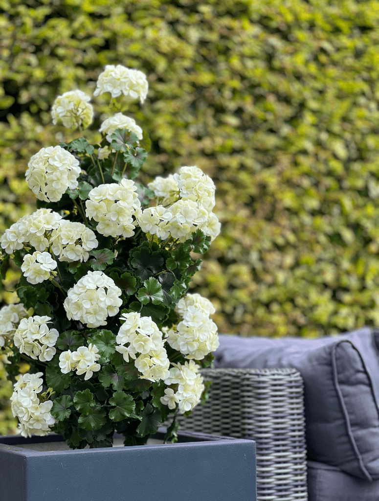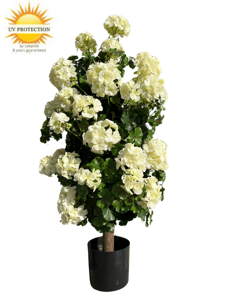 Geranium pyramide 110cm kunstplant UV creme-wit