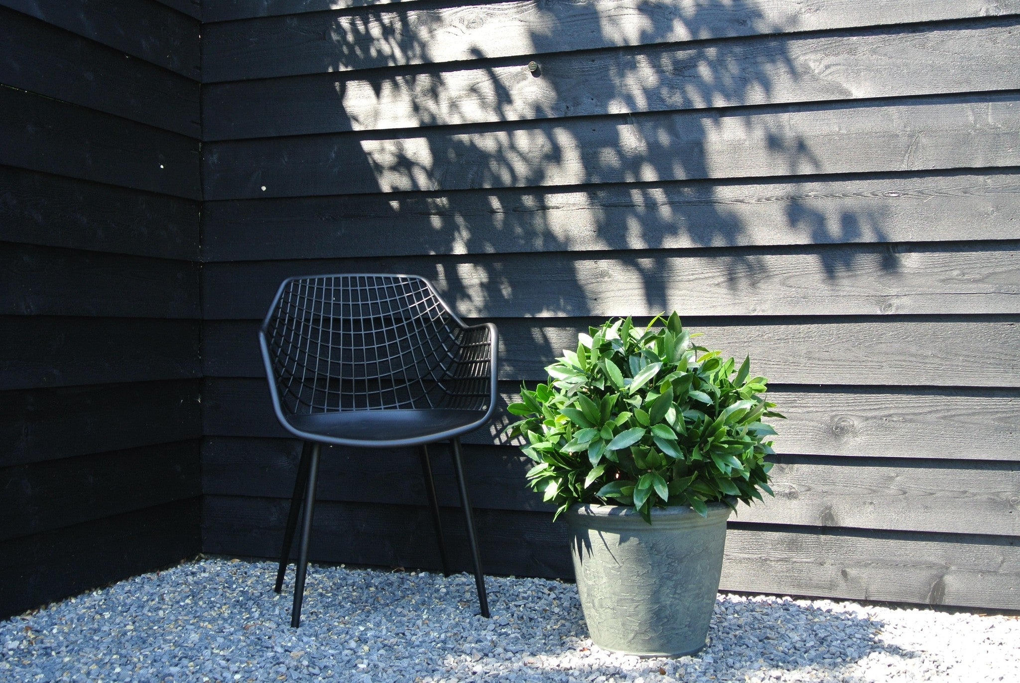 Levering inclusief zwarte pvc pot gestabilseerd met beton