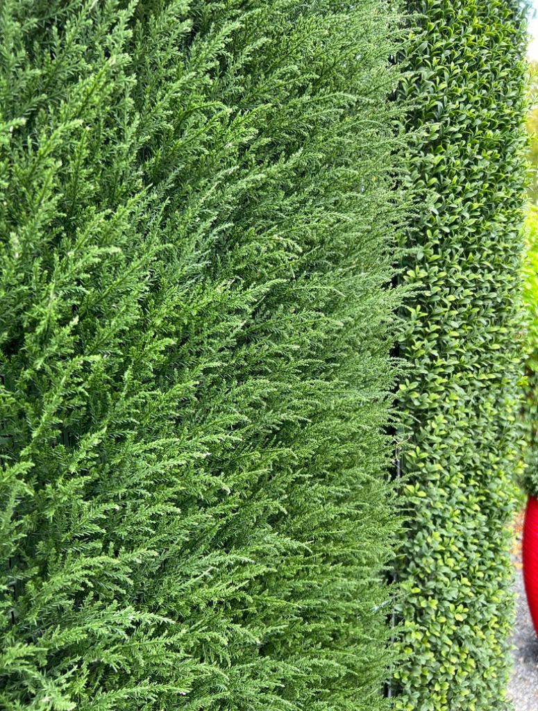 Deze kunsthaag conifeer mat behoort tot het hogere segment vanwege de perfect nagemaakte conifeer takjes en de Premium kwaliteit kunststof wat in dit luxe product is verwerkt. LeopoldFlora is bekend om de kwaliteit en de mooiste kunstplanten en kunstbomen buitenshuis.
